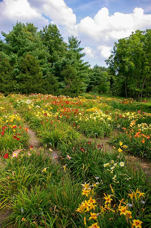 Peak bloom usually occurs the first two weeks of July, but please call ahead before coming to check how our blooms are progressing (it has been running a little earlier the last few years). Also, a call to make sure we will be in the garden to greet you is advised.